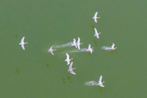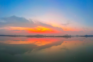 2025年12月9日,江苏泗洪洪泽湖湿地临淮段迎来绝美日出。硕大的红日冉冉升起,鸟儿与红日同框,或栖枝头或掠长空,静谧的湿地被暖橙色调包裹,灵动又治愈,尽显生态之美。