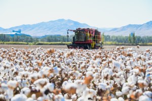 连日来,新疆哈密市伊州区种植的10余万亩棉花近日逐渐吐絮进入了采摘期,各类大型机械田间地头开始采摘新棉。