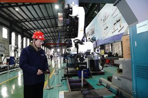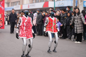 2021年9月20日,机器人在浙江省舟定山市定海区一家购物超市担任巡视员,不断向过往顾客打招呼,提供优质服务,深受消费者喜爱。