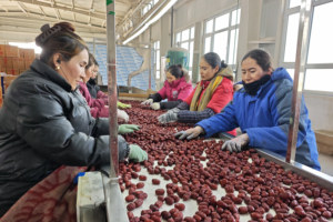 2021年11月19日,江苏省连云港市东海县马大姐食品有限公司工人正在生产手工粉皮。冬闲时节,江苏省连云港市东海县手工粉皮加工产业迎来生产旺季,当地食品企业、合作社充分利用当地盛产的山芋的资源优势,进行吊粉、粉皮、粉条特色食品加工等产业,产品不仅销往北京、山西、河南等地,还远销美国、英国、法国、日本、澳大利亚等国家和地区,实现“冬闲”变“冬忙”, 小粉皮、小粉皮真正成为当地富民增收的大产业。