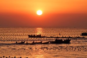 当前位置:农业> 山东荣成:桑沟湾海参收获忙