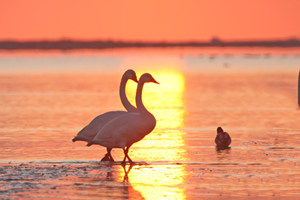 当前位置:自然> 山东威海:大天鹅送走牛年最后一缕朝霞