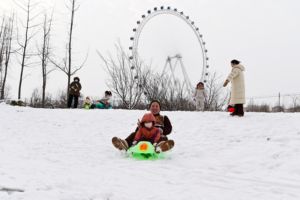 2022年2月2日,重庆市酉阳土家族苗族自治县桃花源街道天山堡村到处银装素裹,来自重庆主城以及酉阳县城不少游客前来赏雪游玩。