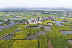2022年3月14日,俯瞰四川省南充市嘉陵区龙蟠镇石板被村,昔日的撂荒地如今变成了一幅美丽的乡村画卷。