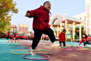当前位置:教育> 江苏淮安:大学生玩趣味游戏乐开怀