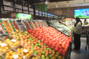 近日,在山西省临汾市襄汾县南辛店乡无姨村的蔬菜大棚内,西红柿、西葫芦等蔬菜绿油葱葱、长势喜人,农民正忙着采收、分拣、装筐、销售,一派忙碌的劳动景象。