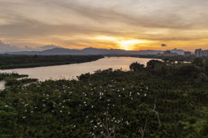 初秋的傍晚,夕阳西沉,在广西桂林市临桂区四塘镇王家村的田野间,数千只白鹭伴着斜阳暮色,从四面八方飞回一处原生态树林栖息。数千只白鹭伴着日落而归,与桂林的山水田园间相映成趣,一幅蔚为壮观的千鸟归巢图在美丽的山水间徐徐展开,让人不仅感叹 这“白鹭天堂”的动人画面。