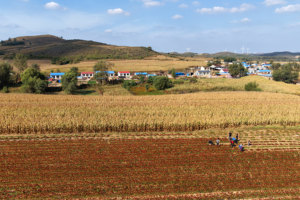 2022年9月21日,在广西桂林市灵川县灵田镇长岗岭村,村民正在“晒秋”(无人机照片)。