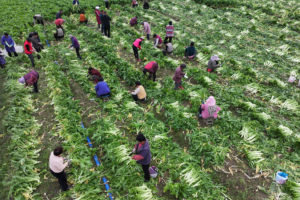 10月23日是霜降节气,贵州省黔东南苗族侗族自治州丹寨县农民抢抓农时管护秋季作物,田间地头一片忙碌。