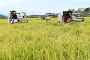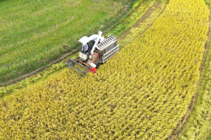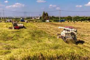 2022年10月31日,江苏省连云港市东海县驼峰镇麦南村农民正操作着机械,在收获后的稻田忙着耙地和播种,为明年小麦丰收奠定基础。