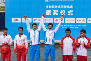 2022年11月6日,江苏省如皋市“荣威杯”城河皮划艇竞逐赛在如城外城河举行,来自全市各镇(街道、区)及市级机关部门的皮划艇选手开桨竞逐,斩浪前行。