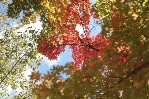 2022年11月20日,湖州飞英公园里,一位女士在享受着秋天的美景,陶醉了。