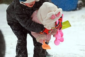 2022年12月10日,辽宁省大连市甘井子区金三角地带,市民冒雪出行。