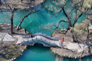 2022年12月24日,浙江省台州市仙居县横溪镇一家灯笼加工作坊,村民忙着晾晒红灯笼(无人机照片)。