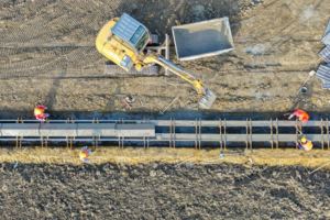 2023年1月31日,江西省吉安市永丰县潭城乡白水门水库灌区,工人正在续建配套与节水改造工程工地上施工,冲刺水利冬修备春耕。近年来,江西省吉安市永丰县持续推进水库灌区配套续建与节水改造,新建改建灌溉渠道和排灌泵站工程,使灌区防洪排涝标准和节水设施得到有效提升,为项目区农业生产旱涝保收提供水利保障。