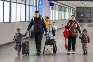 2023年2月26日,在湖北省咸宁市通城县沙堆镇坪坳村乡村振兴园,湖北橼艺服饰有限公司员工忙着生产、包装服装,铆足劲赶制国内外订单,力争一季度“开门红”。