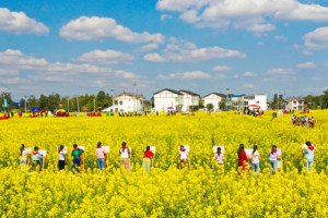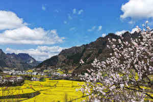 2023年3月3日,四川省阆中市石滩镇,石滩水库库区山地上树木茂盛、油菜金黄、麦苗青青,居民聚居区屋舍俨然,宛如美丽的画卷。近年来,阆中市坚定不移走好生态优先、绿色发展之路,美丽乡村建设取得明显成效。
