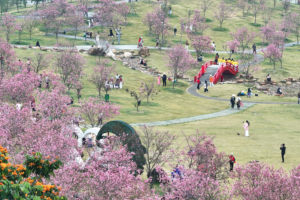 近日,河南商丘日月湖景区樱花岛内樱花竞相盛开,吸引不少游客前来观赏,感受浓浓春意。商丘日月湖景区位于商丘市城乡一体化示范区商务中心区中部,是集引黄调蓄、灌溉补源、生态观光为一体的综合性工程,整体占地面积1.62平方公里,水域面积1.02 平方公里。