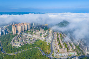 2023年4月7日,雨后初晴的清晨,在江西省赣江新区神农岭本草科技园,千亩生态茶园郁郁葱葱,晨雾缭绕,在桔红的朝霞辉映下,美丽如画。