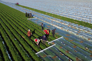 2023年4月11日,在安徽省亳州市谯城区李寨村志农农作物种植专业合作社内,村民正在为70余亩移栽后的西瓜苗覆膜。2022年该合作社利用小拱棚技术,采用西瓜套种辣椒的特色间作套种模式,使得亩均纯收入达到了5000元。近年来,谯城区古城镇不断加大土地流转力度,以农田“优质、集中、连片”的方式,大力发展西瓜、辣椒、中药材等特色间作套种,提升土地的利用率、产出率、生产率,实现农业增效、农民增收。