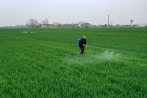 2023年4月27日,在山西省临汾市襄汾县邓庄镇燕村智慧农业示范基地,农技人员驾驶植保无人机进行“一喷三防”技术演示。