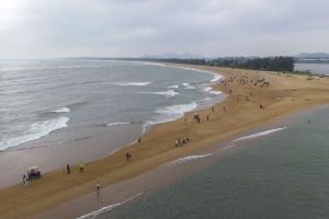 2023年5月2日,海南省琼海市大批游客在博鳌海滨游乐。