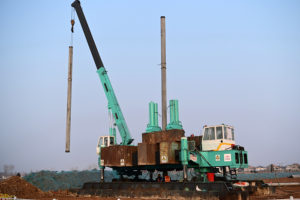 7月6日,位于河南省孟州市化工镇的沁伊高速孟州黄河特大桥建设工地,中交第二航务工程局有限公司建设者在进行桥梁桩基施工。