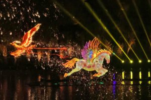 2023年8月10日,游客在河北省张家口市宣化区王家湾乡桑干河大峡谷景区游玩(无人机照片)。