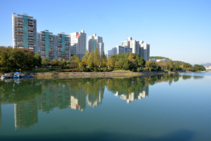 2023年11月13日,航拍下的浙江省湖州市长兴县小浦镇合溪新村依山面水,风景旖旎。