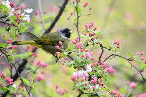 近日,贵州省仁怀市楠竹林公园里的贴梗海棠花娇盈绽放,引来小鸟驻足嬉戏,散发浓浓春意。