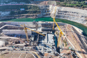 2024年3月21日,工人在陕西汉中经四川巴中至南充高速铁路蓬安西站建设现场施工。(无人机照片)