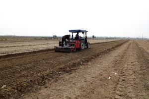 2024年4月11日,河南省开封市龙亭区北郊乡石砦村农民正在田间整地准备种植油葵。