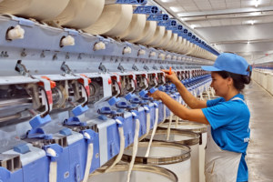 2024年4月16日,位于江苏灌云经济开发区内的连云港鹰游新立成纺织科技有限公司生产车间,工人在生产线上忙碌。当日,国家统计局发布的数据显示,一季度国内生产总值296299亿元,同比增长5.3%,国民经济延续回升向好态势,开局良好,为实现全年目标任务打下较好基础。