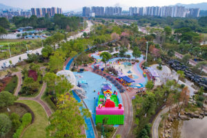 2024年5月21日 夕阳的余辉把四川省华蓥山天池湖湿地公园映照得金光灿烂,美丽迷人。