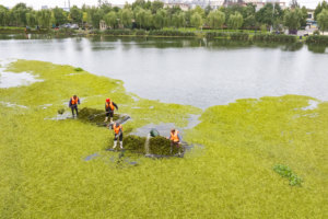 2024年6月4日,江苏省苏州市古运河畔碧波荡漾与绿色生态美如画景(无人机照片)。