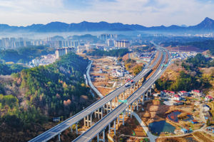 2024年7月5日,晴空万里,安徽省铜陵市上水桥交通枢纽车辆穿梭、高铁飞驰,蔚为壮观。