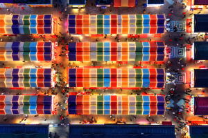 7月12日晚,浙江省湖州市长兴县吕山乡湖羊美食街,不少市民前来逛夜市,尝美食,看演出,享受夜生活。当日,吕山第二十届湖羊文化节举行。近年来,吕山乡结合本地湖羊资源,连续出台以农促旅政策措施,举办美食文化节等特色活动,优化夜经济消费环境,活跃夜间商业和市场,激活提升城市活力。