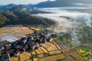 2024年7月18日,湖北随州,位于河南、湖北两省交界桐柏山腹地的抱朴谷雨后云海景观(无人机照片)。