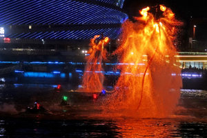 大暑时节,河南省南阳市许多市民和游客来到水上乐园,享受夏日清凉。7月21日,在河南省南阳市中心城区一家温泉水上乐园,市民和游客在互动游戏中享清凉。