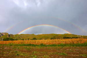当日一场阵雨过后,河北广宗县田家屯村东部上空出现彩虹奇观。