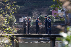 图为2024年8月2日,民警帮助辖区年迈牧民进行毡房拆除。