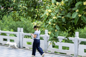 连日来,广西梧州市蒙山县大街小巷、公园景区等地的桂花竞相绽放,挂满枝头,满城飘香,吸引不少市民前来赏花、品花。
