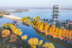 2024年11月16日,江苏省如皋市如城街道外城河两岸色彩斑斓,初冬景色宜人。