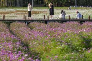 2024年11月30日,湖南省长沙市,市民与游客在湖南农业大学校园内的红枫大道上尽情观赏、拍照打卡。