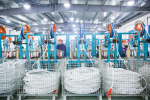 2月5日,位于甘肃省平凉市静宁县工业园区的甘肃恒源利通电器有限责任公司里,工人在生产电线线圈。