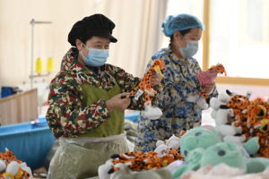 2025年2月7日,在湖南省邵阳市洞口县经开区新起点玩具制造有限公司,员工在赶制出口玩具产品。