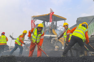 2025年2月15日,中核田湾200万千瓦滩涂光伏示范项目施工现场,工人正在进行海上施工作业(无人机照片)。作为我国最大的海上光伏项目,中核田湾200万千瓦滩涂光伏示范项目目前正在加紧施工。项目总投资约90亿元,全面建成后年平均上网电量22.34亿千瓦时,将与中核集团田湾核电基地相互耦合,形成总装机容量超过1000万千瓦的大型清洁能源基地。