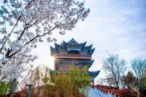 2025年2月27日,广西壮族自治区贺州市爱莲湖公园的桃花迎春绽放,吸引不少市民游客前来游玩赏花,感受春天的气息。