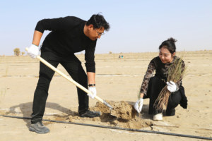 2025年3月11日,在湖南省邵东市流泽镇两兴村,志愿者在植树。
