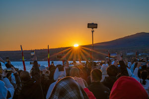 2025年4月2日拍摄的素有“一脚踏三省”之称的湖北省十堰市郧阳区白浪镇、河南省淅川县荆紫关镇和陕西省商南县湘河镇的三角形界碑,人们在这里游玩。